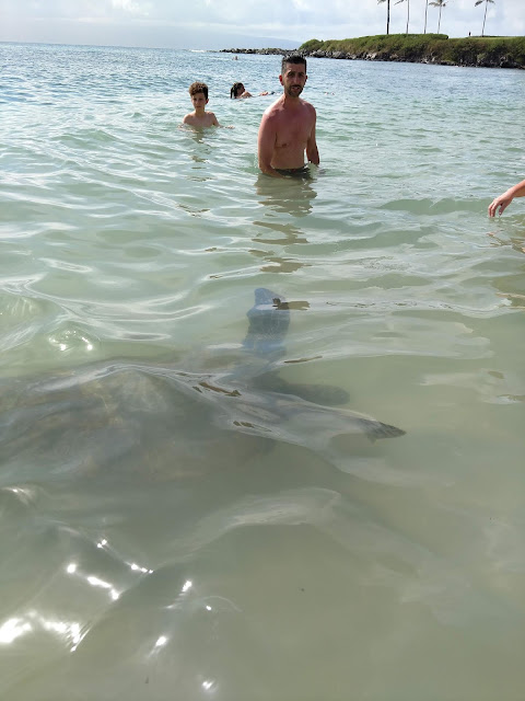 We spent the afternoon at Napili Bay. The boys snorkeled just a bit more around the rocks of the bay spotting more turtles and a lot of cool fish. We all floated in the easy waves and played around at this sweet little beach. I made sure to get some sand there too because it was the lightest color we've seen so far.